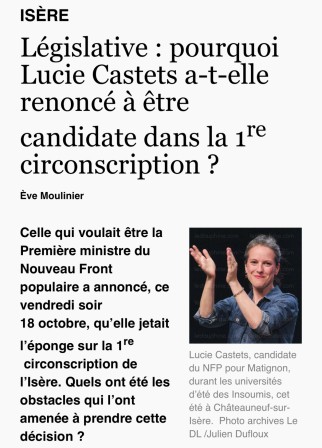 La conclusion de l’article d’Eve Moulinier dans le Dauphiné de ce jour parle d’elle-même : « et si le Nouveau Front populaire explosait en Isère ? » ; et il est temps de regarder les faits en face.