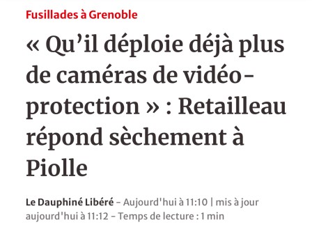 Ce lundi, Éric Piolle a adressé une lettre au ministre de l’Intérieur, appelant à renforcer les effectifs de police nationale à Grenoble, demandant 100 policiers supplémentaires. Ce jeudi 24 octobre, sur les ondes de France Inter, le ministre Bruno Retailleau a répondu sèchement, accusant le maire de tenir un « discours anti-sécuritaire » : « Qu’il installe déjà beaucoup plus de caméras de vidéo-protection… Pour une ville de plus de 160 000 habitants, Grenoble ne compte que 200 caméras. Si nous avions eu un maillage suffisant lors de l’attaque du fourgon blindé, nous aurions pu mieux suivre les auteurs », a-t-il déclaré.